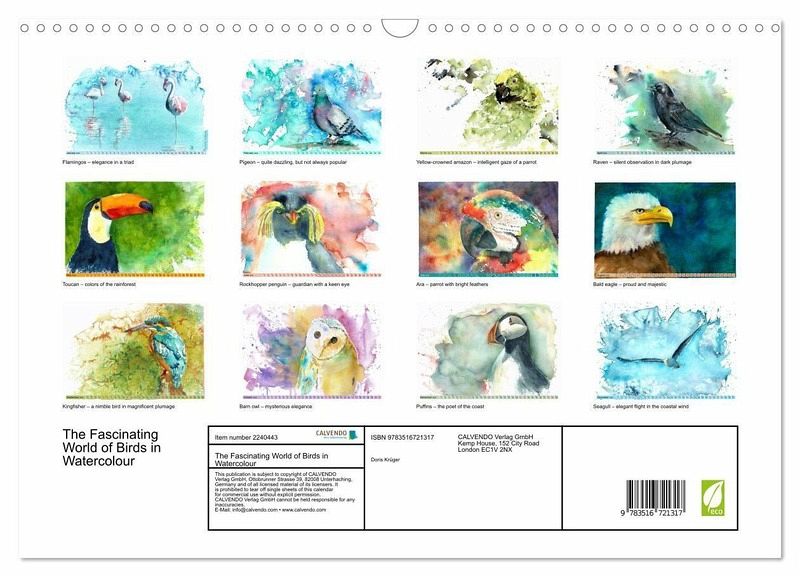 QUALITY - High-quality photo calendar with 12 beautiful images on light-resistant paper, robust spiral binding with hanger.SUSTAINABLE - Significant waste reduction due to print-on-demand production, environmentally friendly FSC-certified paper, produced in the UK, climate-conscious logistical processes.PERFECT GIFT - calendars for friends and family, for children, all ages and all occasions, from Christmas to birthdays and everything in between.LOTS OF CHOICE - Wall calendars in different sizes (DIN A4 and DIN A3), for any topic and personal taste, featuring photography, painting and illustrations.Vibrant watercolour bird art, author: Doris Krüger