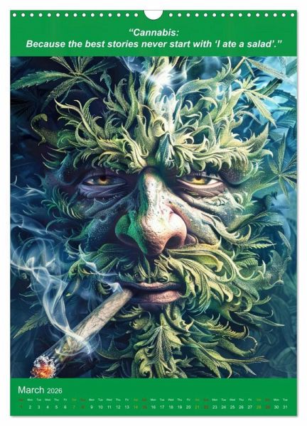 QUALITY - High-quality photo calendar with 12 beautiful images on light-resistant paper, robust spiral binding with hanger.SUSTAINABLE - Significant waste reduction due to print-on-demand production, environmentally friendly FSC-certified paper, produced in the UK, climate-conscious logistical processes.PERFECT GIFT - calendars for friends and family, for children, all ages and all occasions, from Christmas to birthdays and everything in between.LOTS OF CHOICE - Wall calendars in different sizes (DIN A4 and DIN A3), for any topic and personal taste, featuring photography, painting and illustrations.A must have for cannabis lovers, author: Peter Rübsamen