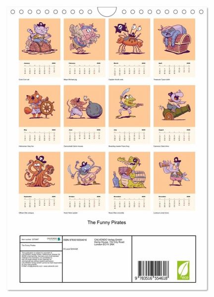 QUALITY - High-quality photo calendar with 12 beautiful images on light-resistant paper, robust spiral binding with hanger.SUSTAINABLE - Significant waste reduction due to print-on-demand production, environmentally friendly FSC-certified paper, produced in the UK, climate-conscious logistical processes.PERFECT GIFT - calendars for friends and family, for children, all ages and all occasions, from Christmas to birthdays and everything in between.LOTS OF CHOICE - Wall calendars in different sizes (DIN A4 and DIN A3), for any topic and personal taste, featuring photography, painting and illustrations.A small pirate crew consisting of funny animals, author: Luca Schmidt