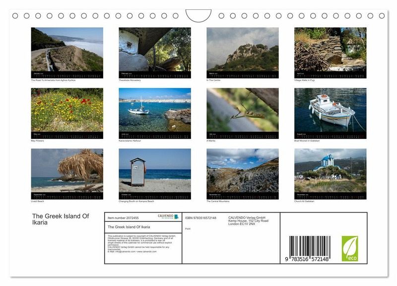 QUALITY - High-quality photo calendar with 12 beautiful images on light-resistant paper, robust spiral binding with hanger.SUSTAINABLE - Significant waste reduction due to print-on-demand production, environmentally friendly FSC-certified paper, produced in the UK, climate-conscious logistical processes.PERFECT GIFT - calendars for friends and family, for children, all ages and all occasions, from Christmas to birthdays and everything in between.LOTS OF CHOICE - Wall calendars in different sizes (DIN A4 and DIN A3), for any topic and personal taste, featuring photography, painting and illustrations.Images from across the Greek Island of Ikaria, author: Alan Jacobs