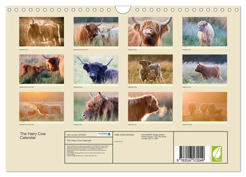 QUALITY - High-quality photo calendar with 12 beautiful images on light-resistant paper, robust spiral binding with hanger.SUSTAINABLE - Significant waste reduction due to print-on-demand production, environmentally friendly FSC-certified paper, produced in the UK, climate-conscious logistical processes.PERFECT GIFT - calendars for friends and family, for children, all ages and all occasions, from Christmas to birthdays and everything in between.LOTS OF CHOICE - Wall calendars in different sizes (DIN A4 and DIN A3), for any topic and personal taste, featuring photography, painting and illustrations.Evocative images of Highland Cattle on Norfolk grazing marshes, author: Geoff du Feu