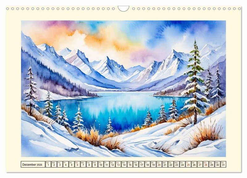Typical motifs of the magical seasons were staged with the help of the AI. Not only the changes in the landscape have been taken into account, but also the flora, fauna and people are shown with their typical behaviour as the seasons change. Let yourself be enchanted by the colours and motifs in delicate watercolour technique throughout the year.