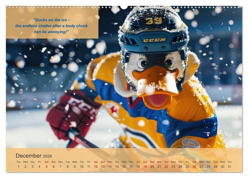 QUALITY - High-quality photo calendar with 12 beautiful images on light-resistant paper, robust spiral binding with hanger.SUSTAINABLE - Significant waste reduction due to print-on-demand production, environmentally friendly FSC-certified paper, produced in the UK, climate-conscious logistical processes.PERFECT GIFT - calendars for friends and family, for children, all ages and all occasions, from Christmas to birthdays and everything in between.LOTS OF CHOICE - Wall calendars in different sizes (DIN A4 and DIN A3), for any topic and personal taste, featuring photography, painting and illustrations.The funniest animals in ice hockey uniforms make every ice hockey fan laugh every day, author: Peter Rübsamen