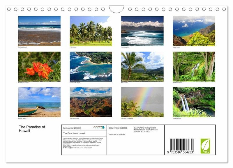 QUALITY - High-quality photo calendar with 12 beautiful images on light-resistant paper, robust spiral binding with hanger.SUSTAINABLE - Significant waste reduction due to print-on-demand production, environmentally friendly FSC-certified paper, produced in the UK, climate-conscious logistical processes.PERFECT GIFT - calendars for friends and family, for children, all ages and all occasions, from Christmas to birthdays and everything in between.LOTS OF CHOICE - Wall calendars in different sizes (DIN A4 and DIN A3), for any topic and personal taste, featuring photography, painting and illustrations.Aloha, author: CrystalLights by Sylvia Seibl
