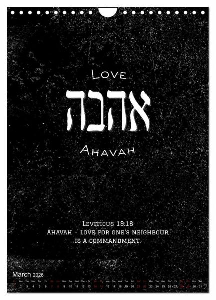 QUALITY - High-quality photo calendar with 12 beautiful images on light-resistant paper, robust spiral binding with hanger.SUSTAINABLE - Significant waste reduction due to print-on-demand production, environmentally friendly FSC-certified paper, produced in the UK, climate-conscious logistical processes.PERFECT GIFT - calendars for friends and family, for children, all ages and all occasions, from Christmas to birthdays and everything in between.LOTS OF CHOICE - Wall calendars in different sizes (DIN A4 and DIN A3), for any topic and personal taste, featuring photography, painting and illustrations.A collection of Hebrew letters presented as inspiring works of art, radiating light and timeless wisdom fromthe Hebrew Bible, the Tanach., author: Marena Camadini