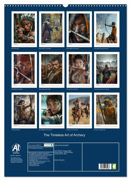 QUALITY - High-quality photo calendar with 12 beautiful images on light-resistant paper, robust spiral binding with hanger.SUSTAINABLE - Significant waste reduction due to print-on-demand production, environmentally friendly FSC-certified paper, produced in the UK, climate-conscious logistical processes.PERFECT GIFT - calendars for friends and family, for children, all ages and all occasions, from Christmas to birthdays and everything in between.LOTS OF CHOICE - Wall calendars in different sizes (DIN A4 and DIN A3), for any topic and personal taste, featuring photography, painting and illustrations.The art of bow and arrow as a sport and craft, author: Kerstin Waurick