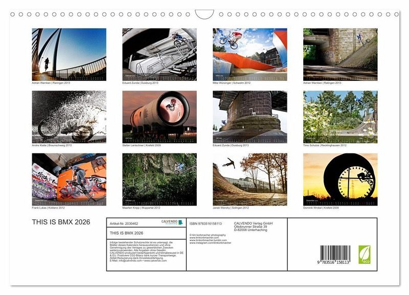 QUALITÄT - Hochwertiger Fotokalender mit 12 wunderschönen Motiven auf lichtbeständigem Bilderdruckpapier, robuste Spiralbindung mit Aufhängebügel.NACHHALTIG - deutliche Abfallreduzierung durch bedarfsgerechte Einzelstückfertigung, umweltfreundliches FSC-zertifiziertes Papier, Produktion in Deutschland, klimabewusste Logistik.PERFEKTES GESCHENK - Kalender für Freunde und Familie, für Kinder und Erwachsene, jung und alt, zu Weihnachten, Geburtstag oder zwischendurch.VIELFALT - Bildkalender in verschiedenen Formaten, z.B. DIN A5, DIN A4, DIN A3 sowie DIN A2. Ob Naturmotiv, Gemälde oder Fotos, ideal für ein persönliches Wohlfühlambiente.BMX Fotografie von Tim Korbmacher von Autor(in): Tim Korbmacher