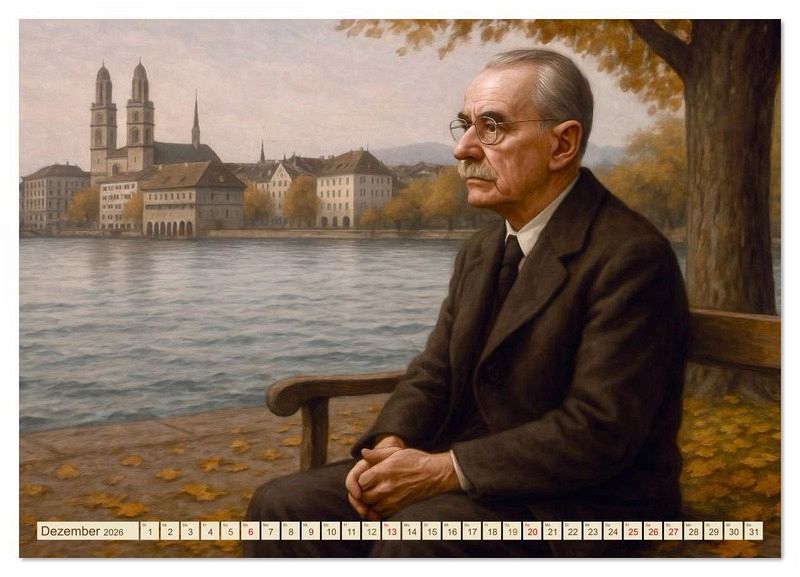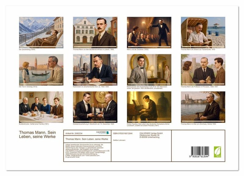 Dieser beeindruckende Kalender lädt ein zu einer bildlichen Reise durch das Leben und Werk eines der größten deutschsprachigen Autoren: Thomas Mann. Zwölf stimmungsvolle Illustrationen, die Steffani Lehmann mit Unterstützung einer KI editiert hat, zeigen den Schriftsteller, Denker und Zeitzeugen - von den Buddenbrooks zum Zauberberg, von Lübeck bis Princeton.