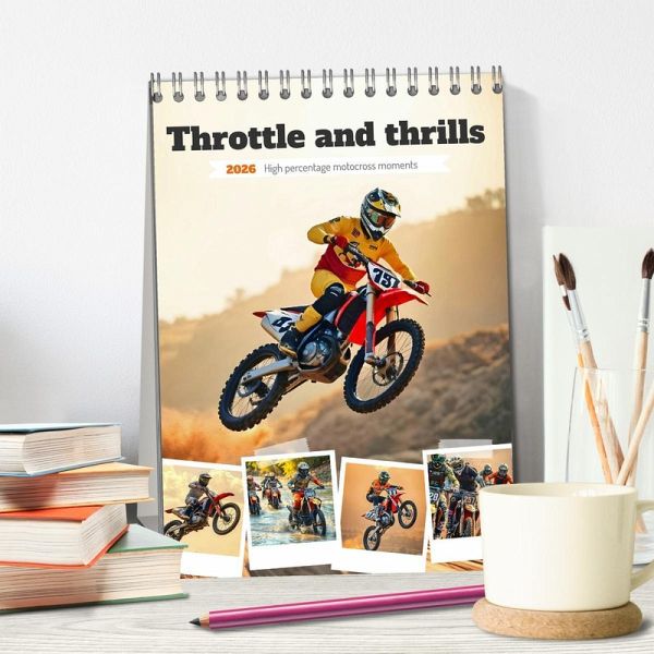 QUALITY - High-quality photo calendar with 12 beautiful images on light-resistant paper, robust spiral binding.SUSTAINABLE - Significant waste reduction due to print-on-demand production, environmentally friendly FSC-certified paper, produced locally, climate-conscious logistical processes.PERFECT GIFT - calendars for friends and family, for children, all ages and all occasions, from Christmas to birthdays and everything in between.LOTS OF CHOICE - Wall calendars in different sizes (DIN A4 and DIN A3), for any topic and personal taste, featuring photography, painting and illustrations.Full throttle through the year with pure AI generated motocross. von Autor(in): Michaela Spreider