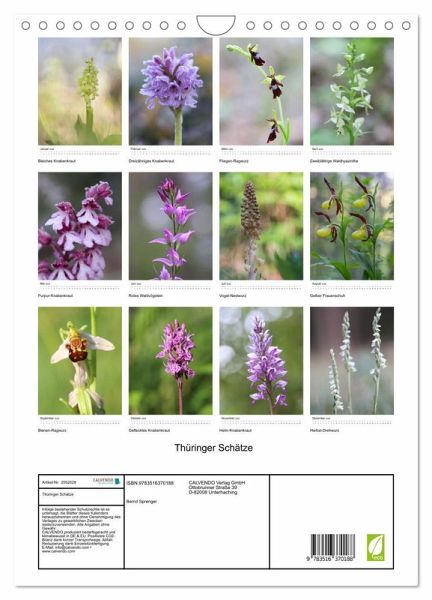 QUALITÄT - Hochwertiger Fotokalender mit 12 wunderschönen Motiven auf lichtbeständigem Bilderdruckpapier, robuste Spiralbindung mit Aufhängebügel.NACHHALTIG - deutliche Abfallreduzierung durch bedarfsgerechte Einzelstückfertigung, umweltfreundliches FSC-zertifiziertes Papier, Produktion in Deutschland, klimabewusste Logistik.PERFEKTES GESCHENK - Kalender für Freunde und Familie, für Kinder und Erwachsene, jung und alt, zu Weihnachten, Geburtstag oder zwischendurch.VIELFALT - Bildkalender in verschiedenen Formaten, z.B. DIN A5, DIN A4, DIN A3 sowie DIN A2. Ob Naturmotiv, Gemälde oder Fotos, ideal für ein persönliches Wohlfühlambiente.Thüringen ist Standort zahlreicher Orchideen die man bei Wanderungen durch die Natur entdecken kann von Autor(in): Bernd Sprenger