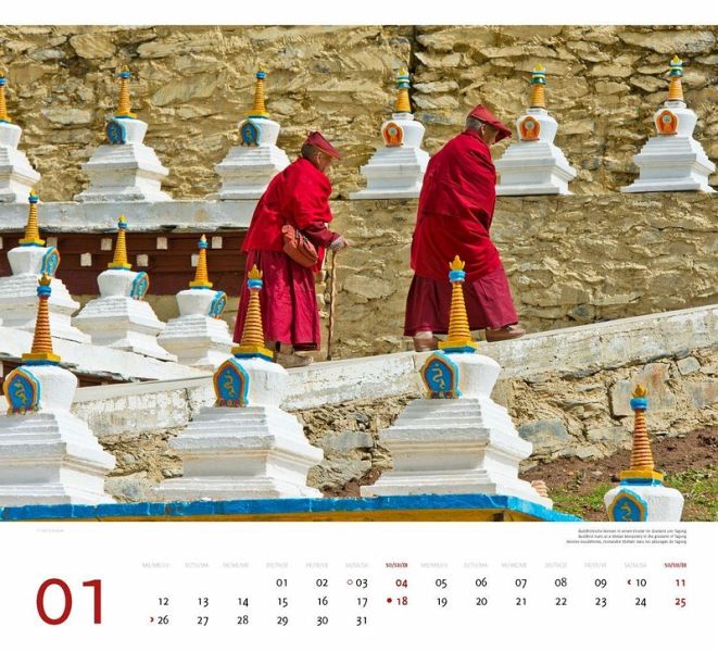 Für den Kalender Tibet 2026 bereiste der mehrfach ausgezeichnete Fotograf Olaf Schubert wieder die verschiedensten Landesteile der tibetischen Hochebene.Schwerpunkte der Reisen waren Zentraltibet, Osttibet und die 1000 km westlich gelegene Region um den heiligen Berg Kailash. Auch BIlder der Hochebene Changtang finden sich in diesem Kalender. Seine Landeskenntnisse und intensiven Kontakte zur Bevölkerung zeigen sich in seinen beeindruckenden, lebendigen Fotos. 13 herausragende Bilder hat Olaf Schubert für seinen Kalender TIBET 2026 ausgewählt. Es wechseln sich auf wunderbare Art Naturaufnahmen aus der Himalayaregion mit Szenen aus dem Alltags- und Klosterleben ab. Dazu gibt es ein internationales Kalendarium auf Deutsch, Englisch und Französisch.Die brillanten Fotos kommen auf dem hochwertigen Kunstdruckpapier optimal zur Geltung (13 Motive mit Spiralbindung).Kalender Tibet 2026, Großformat (48,5cm x 44cm)