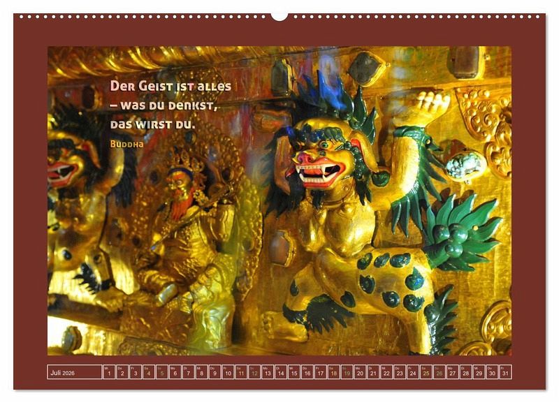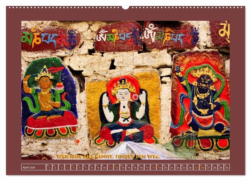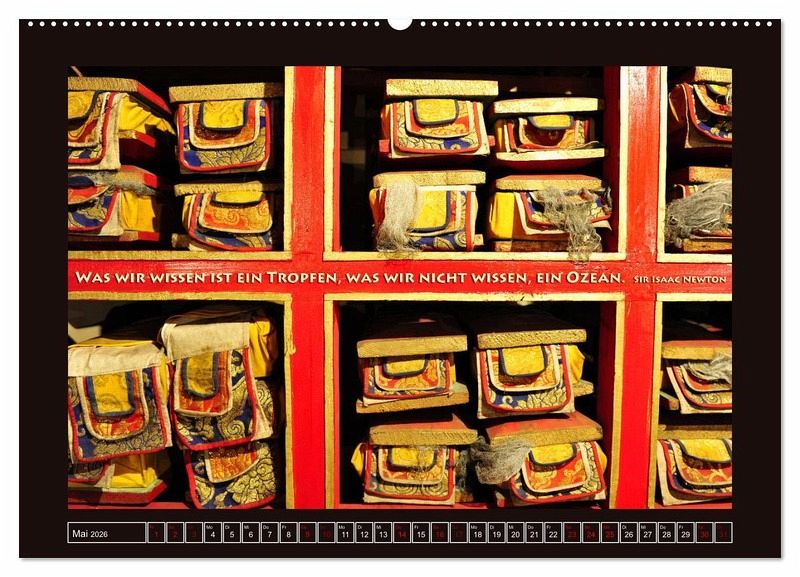 Dieser Kalender zeigt Fotos aus allen Teilen des historischen Tibets (Kham, Amdo, Ü, Tsang, Ngari) in Verbindung mit einem zu dem Bild passenden Sinnspruch.
