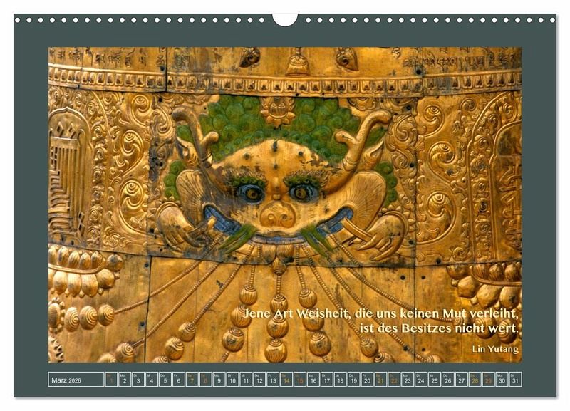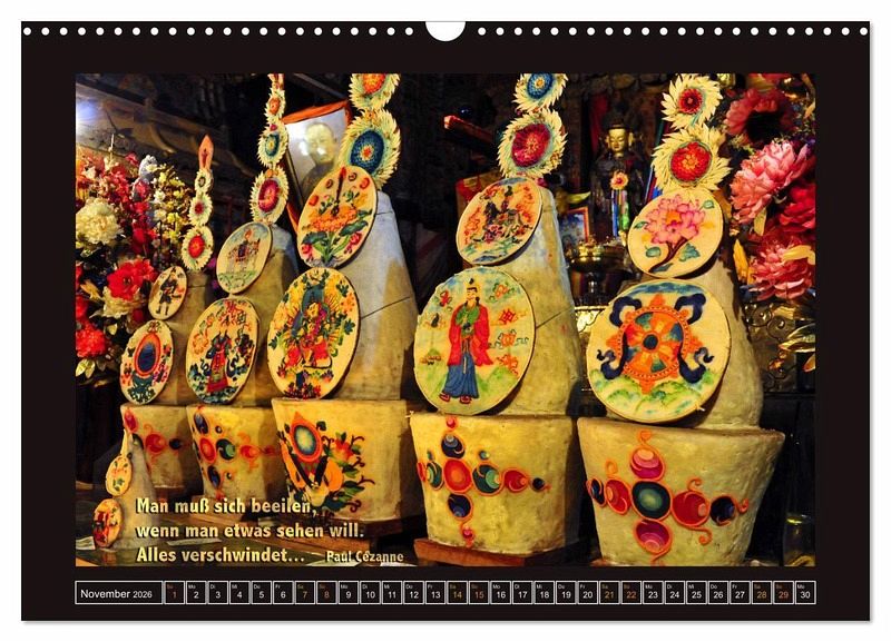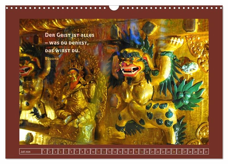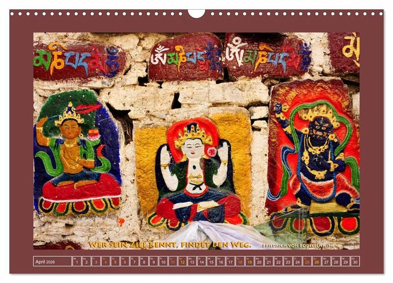 Dieser Kalender zeigt Fotos aus allen Teilen des historischen Tibets (Kham, Amdo, Ü, Tsang, Ngari) in Verbindung mit einem zu dem Bild passenden Sinnspruch.
