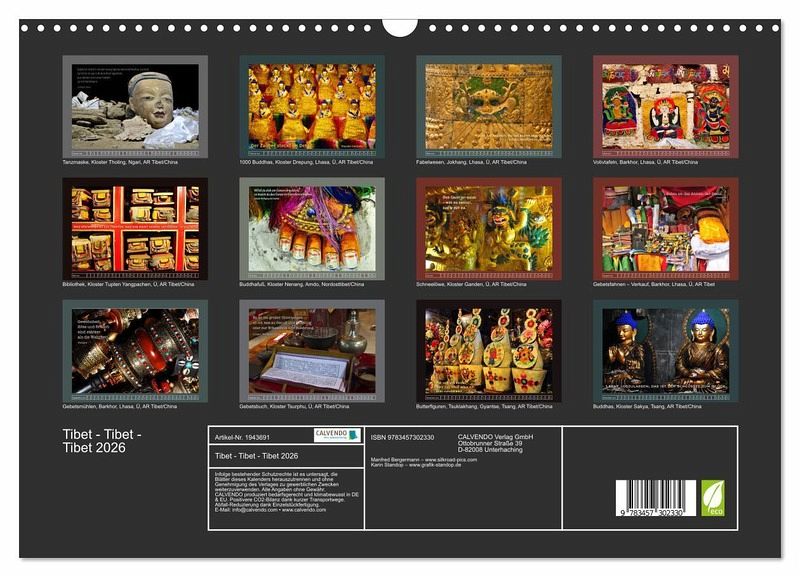 QUALITÄT - Hochwertiger Fotokalender mit 12 wunderschönen Motiven auf lichtbeständigem Bilderdruckpapier, robuste Spiralbindung mit Aufhängebügel.NACHHALTIG - deutliche Abfallreduzierung durch bedarfsgerechte Einzelstückfertigung, umweltfreundliches FSC-zertifiziertes Papier, Produktion in Deutschland, klimabewusste Logistik.PERFEKTES GESCHENK - Kalender für Freunde und Familie, für Kinder und Erwachsene, jung und alt, zu Weihnachten, Geburtstag oder zwischendurch.VIELFALT - Bildkalender in verschiedenen Formaten, z.B. DIN A5, DIN A4, DIN A3 sowie DIN A2. Ob Naturmotiv, Gemälde oder Fotos, ideal für ein persönliches Wohlfühlambiente.In diesem Kalender finden Sie Bilder aus dem tibetischen Kulturraum, mit Zitaten, die das Bild inhaltlich ergänzen. von Autor(in): Manfred Bergermann