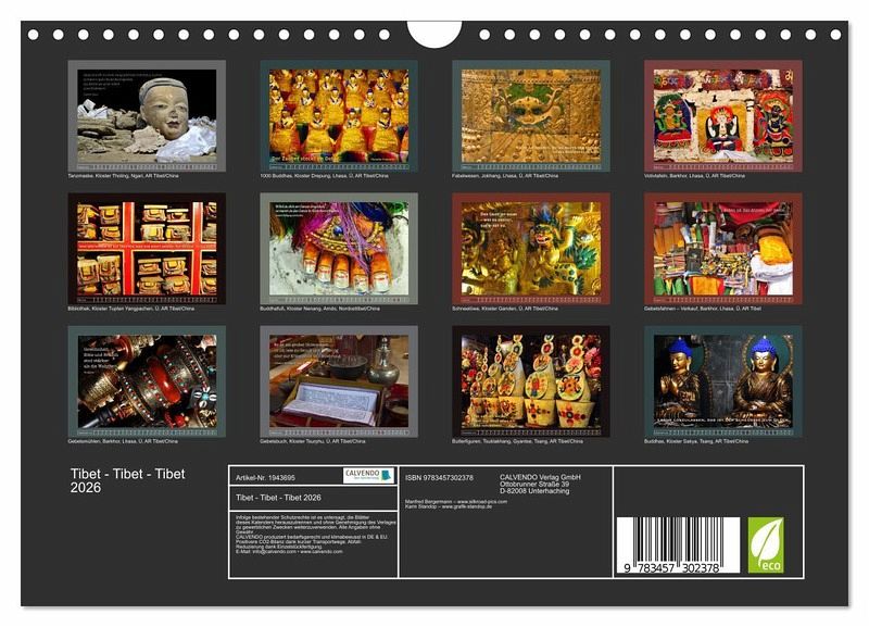 QUALITÄT - Hochwertiger Fotokalender mit 12 wunderschönen Motiven auf lichtbeständigem Bilderdruckpapier, robuste Spiralbindung mit Aufhängebügel.NACHHALTIG - deutliche Abfallreduzierung durch bedarfsgerechte Einzelstückfertigung, umweltfreundliches FSC-zertifiziertes Papier, Produktion in Deutschland, klimabewusste Logistik.PERFEKTES GESCHENK - Kalender für Freunde und Familie, für Kinder und Erwachsene, jung und alt, zu Weihnachten, Geburtstag oder zwischendurch.VIELFALT - Bildkalender in verschiedenen Formaten, z.B. DIN A5, DIN A4, DIN A3 sowie DIN A2. Ob Naturmotiv, Gemälde oder Fotos, ideal für ein persönliches Wohlfühlambiente.In diesem Kalender finden Sie Bilder aus dem tibetischen Kulturraum, mit Zitaten, die das Bild inhaltlich ergänzen. von Autor(in): Manfred Bergermann