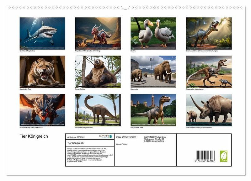PREMIUM-LINIE - Brillanter Fotokalender mit 12 wunderschönen Motiven, Kunstdruck in Hochglanz in Museumsqualität.QUALITÄT - edle Materialien, stabile Rückwand mit 2 innovativen Einstecktaschen für eine optimale Präsentation an der Wand.NACHHALTIG - deutliche Abfallreduzierung durch bedarfsgerechte Einzelstückfertigung, umweltfreundliches FSC-zertifiziertes Papier, Produktion in Deutschland, klimabewusste Logistik.PERFEKTES GESCHENK - Kalender für Freunde und Familie, für Kinder und Erwachsene, jung und alt, zu Weihnachten, Geburtstag oder zwischendurch.Erleben Sie eine faszinierende Reise durch die Welt ausgestorbener Kreaturen, eindrucksvoll in 13 KI-generierten Bildern dargestellt. Von mächtigen Dinosauriern über majestätische Mammuts bis hin zu mystischen Drachen - von Autor(in): Hannah
