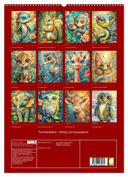 Tauche ein in die faszinierende Welt der skurrilen Tierfiguren in unserem besonderen Kalender. Lass dich von lebhaften Tierporträts begeistern, die mit einer verspielten Dekoration aus bunten Blumen und psychedelischen Mustern geschmückt sind. Die KI-generierten Tiere mit ihren großen Augen und ihrem charmanten Design werden dein Herz im Nu erobern. Dieser Kalender ist ein wahres Highlight für alle Liebhaber von niedlichen, humorvollen und kreativen Kunstwerken. Sichere dir jetzt deinen Kalender und zaubere dir jeden Monat ein Lächeln ins Gesicht!