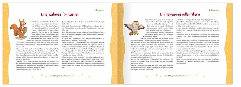 - Eine Geschichte für jüngere Kinder: In diesem Weihnachtskalender wird eine niedliche Tiergeschichte in 24 Kapiteln erzählt.
