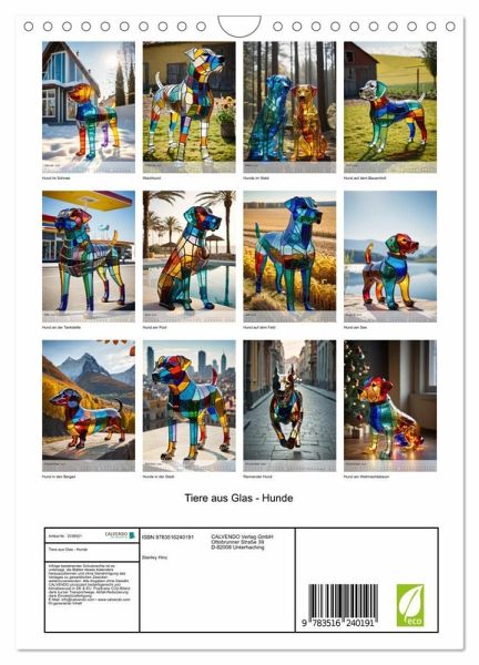 QUALITÄT - Hochwertiger Fotokalender mit 12 wunderschönen Motiven auf lichtbeständigem Bilderdruckpapier, robuste Spiralbindung mit Aufhängebügel.NACHHALTIG - deutliche Abfallreduzierung durch bedarfsgerechte Einzelstückfertigung, umweltfreundliches FSC-zertifiziertes Papier, Produktion in Deutschland, klimabewusste Logistik.PERFEKTES GESCHENK - Kalender für Freunde und Familie, für Kinder und Erwachsene, jung und alt, zu Weihnachten, Geburtstag oder zwischendurch.VIELFALT - Bildkalender in verschiedenen Formaten, z.B. DIN A5, DIN A4, DIN A3 sowie DIN A2. Ob Naturmotiv, Gemälde oder Fotos, ideal für ein persönliches Wohlfühlambiente.Faszinierende Hunde aus farbenfrohem Glas, kunstvoll gestaltet und detailverliebt präsentier von Autor(in): Stanley Hinz