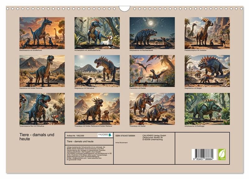 QUALITÄT - Hochwertiger Fotokalender mit 12 wunderschönen Motiven auf lichtbeständigem Bilderdruckpapier, robuste Spiralbindung mit Aufhängebügel.NACHHALTIG - deutliche Abfallreduzierung durch bedarfsgerechte Einzelstückfertigung, umweltfreundliches FSC-zertifiziertes Papier, Produktion in Deutschland, klimabewusste Logistik.PERFEKTES GESCHENK - Kalender für Freunde und Familie, für Kinder und Erwachsene, jung und alt, zu Weihnachten, Geburtstag oder zwischendurch.VIELFALT - Bildkalender in verschiedenen Formaten, z.B. DIN A5, DIN A4, DIN A3 sowie DIN A2. Ob Naturmotiv, Gemälde oder Fotos, ideal für ein persönliches Wohlfühlambiente.Tiere aus längst vergangenen Zeiten treffen auf Tiere der heutigen Zeit von Autor(in): Anita Brückmann
