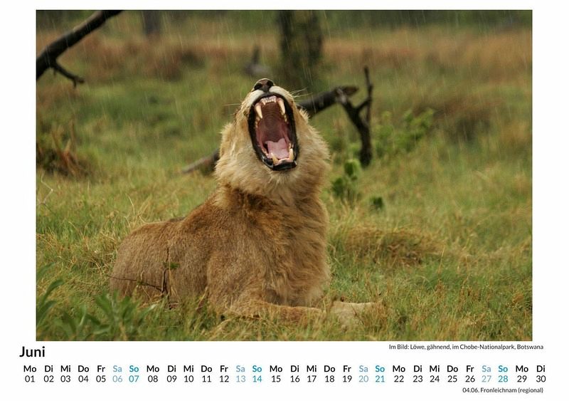 Entdecken Sie die faszinierende Tierwelt der Savanne mit unserem hochwertigen Wandkalender! Lassen Sie sich Monat für Monat von atemberaubenden Motiven majestätischer Löwen, eleganter Giraffen und vieler weiterer Tiere verzaubern. Jedes Bild wurde sorgfältig ausgewählt und auf lichtbeständigem Bilderdruckpapier in brillanten Farben gedruckt. Der Kalender wird in Deutschland auf FSC-zertifiziertem Papier produziert - für ein nachhaltiges und umweltbewusstes Erlebnis. Perfekt für Tierliebhaber und Naturliebhaber, die sich das wilde Herz Afrikas nach Hause holen möchten. Gönnen Sie sich oder Ihren Liebsten ein Stück Savanne - jeden Tag aufs Neue! Hochwertig Erleben Sie ein Jahr voller Eleganz mit unserem Premium-Fotokalender. Jedes der 12 Motive ist auf hochwertigem, lichtbeständigem Bilderdruckpapier gedruckt, um die Lebendigkeit jedes Bildes zu bewahren. Die robuste Spiralbindung gewährleistet Langlebigkeit und einfache Handhabung. Nachhaltig Unser Engagement für die Umwelt spiegelt sich in jedem Exemplar wider. Durch die Produktion auf Abruf reduzieren wir signifikant unseren Abfall. Wir verwenden ausschließlich umweltfreundliches, FSC-zertifiziertes Papier. Stolz gefertigt in Deutschland, achten wir bei unserer Logistik auf Klimaschutz, um unseren ökologischen Fußabdruck zu minimieren. Das ideale Geschenk Dieser Kalender ist das perfekte Präsent für jeden Anlass - ob Weihnachten, Geburtstage oder einfach als liebevolle Aufmerksamkeit zwischendurch. Geeignet für Freunde, Familie, Kinder und Erwachsene gleichermaßen, bereichert er jedes Zuhause mit seiner Vielfalt und Schönheit, unabhängig vom Alter der Beschenkten.