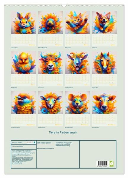 QUALITÄT - Hochwertiger Fotokalender mit 12 wunderschönen Motiven auf lichtbeständigem Bilderdruckpapier, robuste Spiralbindung mit Aufhängebügel.NACHHALTIG - deutliche Abfallreduzierung durch bedarfsgerechte Einzelstückfertigung, umweltfreundliches FSC-zertifiziertes Papier, Produktion in Deutschland, klimabewusste Logistik.PERFEKTES GESCHENK - Kalender für Freunde und Familie, für Kinder und Erwachsene, jung und alt, zu Weihnachten, Geburtstag oder zwischendurch.VIELFALT - Bildkalender in verschiedenen Formaten, z.B. DIN A5, DIN A4, DIN A3 sowie DIN A2. Ob Naturmotiv, Gemälde oder Fotos, ideal für ein persönliches Wohlfühlambiente.Bunte einheimische Tiere voller Spaß von Autor(in): drachenkind-fotografie