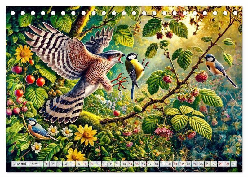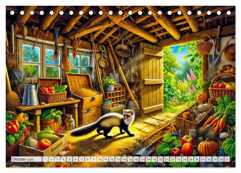Entdecken Sie die faszinierende Tierwelt in Ihrem eigenen Garten mit unserem Kalender "Tiere im Garten - Tierische Begegnungen in der grünen Oase". Jeder Monat präsentiert eine liebevoll gestaltete KI-generierte Illustration, die die heimischen Tiere in ihrer natürlichen Umgebung zeigt. Von einem neugierigen Igel, über einen schelmischen Marder, der das alte Gartenhaus erkundet, bis hin zu einem schlauen Fuchs, der im Dämmerlicht auf Beutezug geht. Die detailreichen Bilder lassen die Tierchen lebendig werden und machen Ihren Garten zu einer grünen Oase, die nicht nur zum Entspannen einlädt, sondern auch zum Staunen und Forschen anregt.