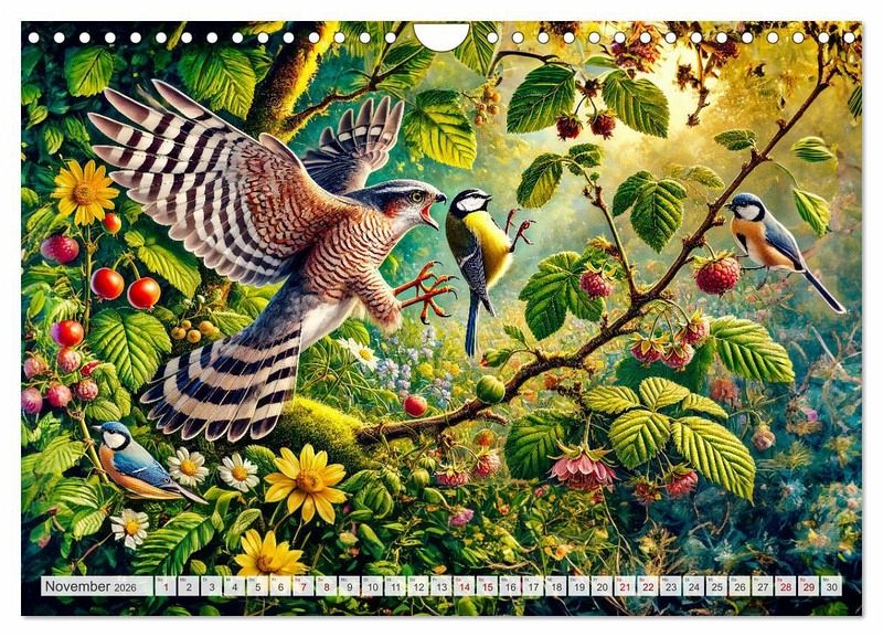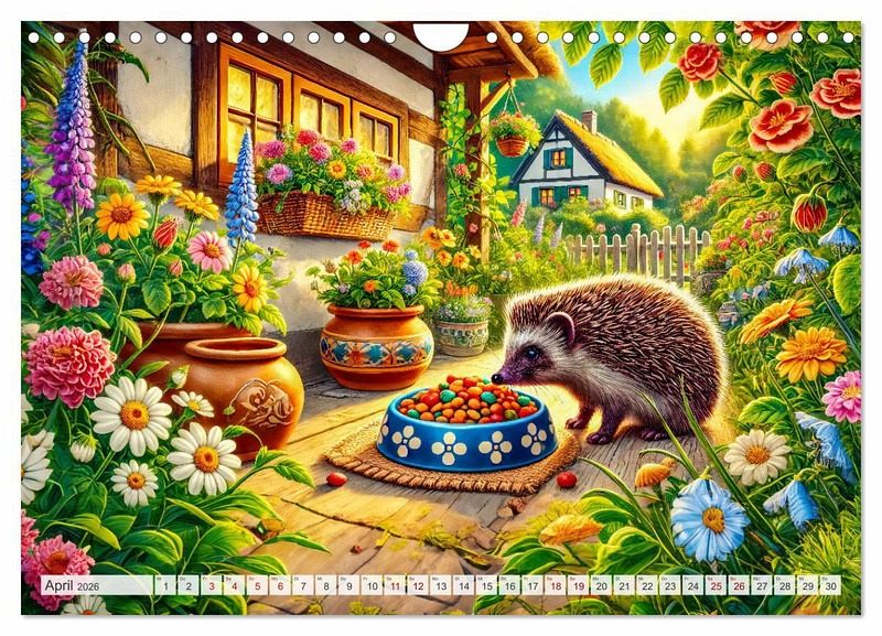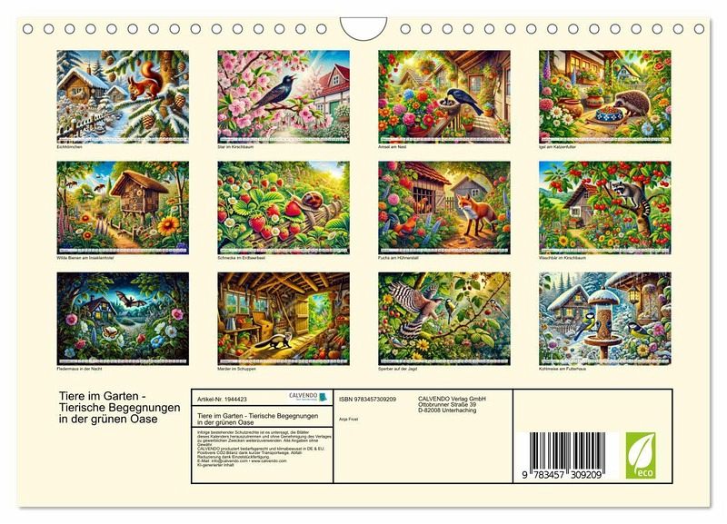 Entdecken Sie die faszinierende Tierwelt in Ihrem eigenen Garten mit unserem Kalender "Tiere im Garten - Tierische Begegnungen in der grünen Oase". Jeder Monat präsentiert eine liebevoll gestaltete KI-generierte Illustration, die die heimischen Tiere in ihrer natürlichen Umgebung zeigt. Von einem neugierigen Igel, über einen schelmischen Marder, der das alte Gartenhaus erkundet, bis hin zu einem schlauen Fuchs, der im Dämmerlicht auf Beutezug geht. Die detailreichen Bilder lassen die Tierchen lebendig werden und machen Ihren Garten zu einer grünen Oase, die nicht nur zum Entspannen einlädt, sondern auch zum Staunen und Forschen anregt.
