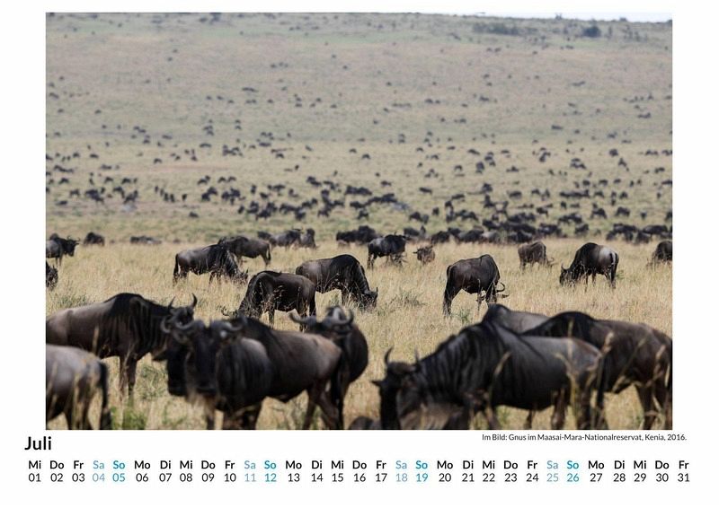 Entdecken Sie die faszinierende Tierwelt der Masai Mara in Kenia mit unserem exklusiven Wandkalender! Tauchen Sie Monat für Monat in die atemberaubende Schönheit dieses einzigartigen Naturschutzgebiets ein. 12 liebevoll ausgewählte Motive zeigen majestätische Löwen, elegante Giraffen und beeindruckende Elefanten in ihrer natürlichen Umgebung. Gedruckt auf hochwertigem, lichtbeständigem Bilderdruckpapier, bringt dieser Kalender die Wildnis direkt in Ihr Zuhause. Nachhaltig in Deutschland auf FSC-zertifiziertem Papier produziert, ist er nicht nur ein optisches Highlight, sondern auch ein umweltbewusster Begleiter durch das Jahr. Holen Sie sich ein Stück Afrika an Ihre Wand! Hochwertig Erleben Sie ein Jahr voller Eleganz mit unserem Premium-Fotokalender. Jedes der 12 Motive ist auf hochwertigem, lichtbeständigem Bilderdruckpapier gedruckt, um die Lebendigkeit jedes Bildes zu bewahren. Die robuste Spiralbindung gewährleistet Langlebigkeit und einfache Handhabung. Nachhaltig Unser Engagement für die Umwelt spiegelt sich in jedem Exemplar wider. Durch die Produktion auf Abruf reduzieren wir signifikant unseren Abfall. Wir verwenden ausschließlich umweltfreundliches, FSC-zertifiziertes Papier. Stolz gefertigt in Deutschland, achten wir bei unserer Logistik auf Klimaschutz, um unseren ökologischen Fußabdruck zu minimieren. Das ideale Geschenk Dieser Kalender ist das perfekte Präsent für jeden Anlass - ob Weihnachten, Geburtstage oder einfach als liebevolle Aufmerksamkeit zwischendurch. Geeignet für Freunde, Familie, Kinder und Erwachsene gleichermaßen, bereichert er jedes Zuhause mit seiner Vielfalt und Schönheit, unabhängig vom Alter der Beschenkten.