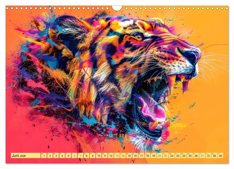 Erfreuen Sie sich der faszinierenden Welt der Tiere im Pop-Art-Stil. Präsentiert werden imposante Raubtiere in Aktion, wie der kraftvolle Gorilla oder eher verträumt der herzige junge Schimpanse. Mit kräftigen Farben und gelegentlichen Farbklecksen verleihen wir den KI-generierten Werken ein besonders originelles Aussehen. Ein Must-Have für alle Tierfans, die sich von dieser einzigartigen Kombination aus Kunst und Natur begeistern lassen möchten. Sichern Sie sich jetzt Ihren Kalender und lassen Sie sich von der Schönheit und Kraft der Tiere verzaubern.