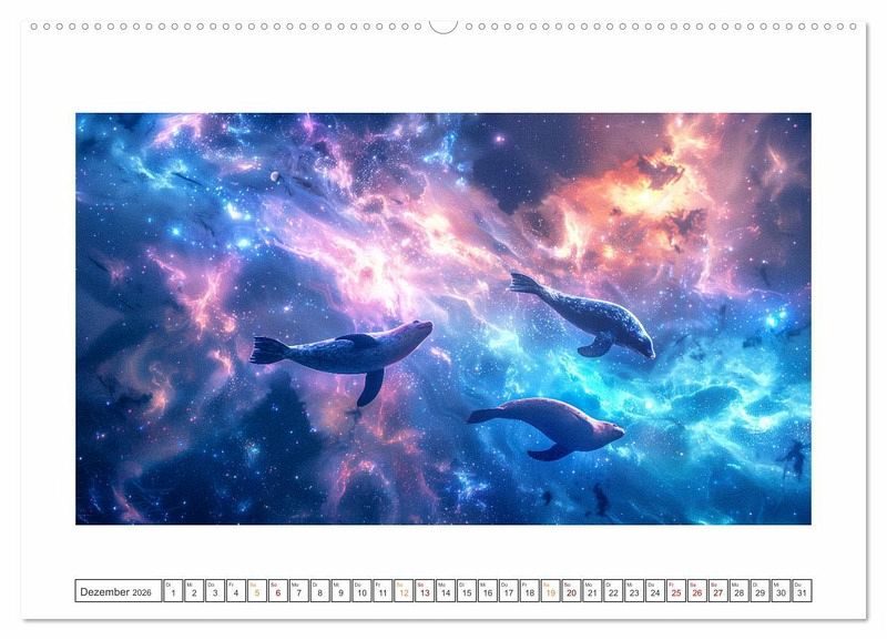 Begleiten Sie uns auf eine Reise durch die Galaxien, wo farbenfrohe Tiere majestätisch durch die endlosen Weiten des Weltraums gleiten. Erleben Sie die Faszination, wenn sich die Ozeane des Universums öffnen und eine Welt voller Geheimnisse und Wunder enthüllen. Unsere surreale Fantasie entführt Sie in eine Welt voller Magie und Abenteuer. Tauchen Sie ein in ein Universum, das Ihre Sinne verzaubern und Ihre Vorstellungskraft beflügeln wird. Alle hier gezeigten Bilder wurden mit Sorgfalt, Liebe und mit Hilfe einer KI generiert. Abschließend werden sie mit Bildbearbeitungsprogrammen überarbeitet und in den Kalender eingefügt.
