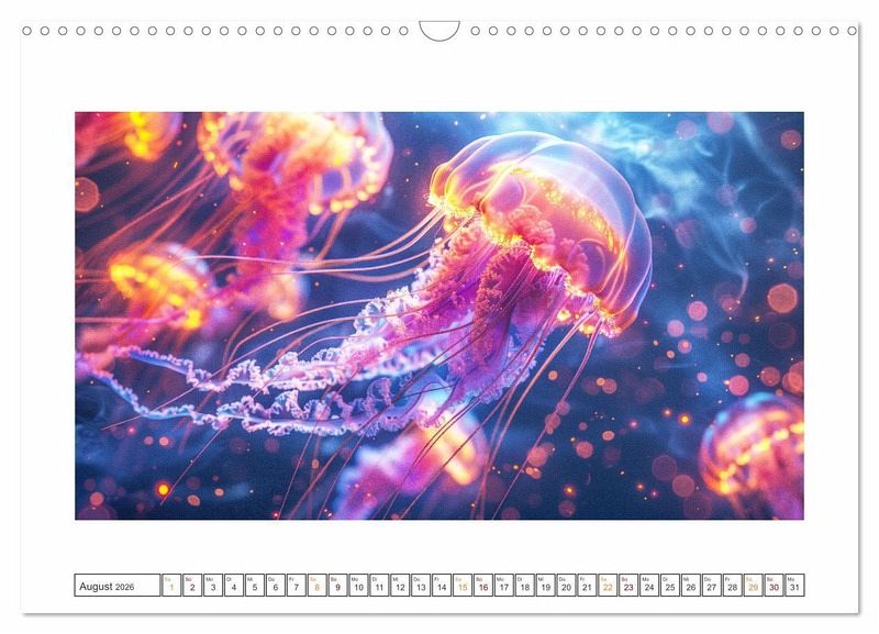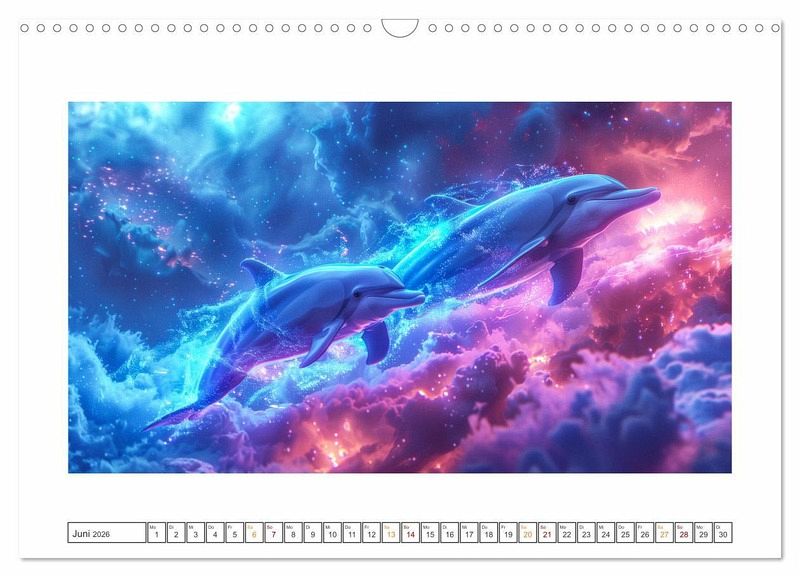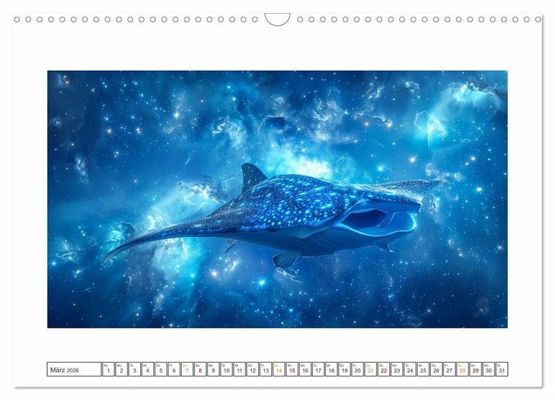 Begleiten Sie uns auf eine Reise durch die Galaxien, wo farbenfrohe Tiere majestätisch durch die endlosen Weiten des Weltraums gleiten. Erleben Sie die Faszination, wenn sich die Ozeane des Universums öffnen und eine Welt voller Geheimnisse und Wunder enthüllen. Unsere surreale Fantasie entführt Sie in eine Welt voller Magie und Abenteuer. Tauchen Sie ein in ein Universum, das Ihre Sinne verzaubern und Ihre Vorstellungskraft beflügeln wird. Alle hier gezeigten Bilder wurden mit Sorgfalt, Liebe und mit Hilfe einer KI generiert. Abschließend werden sie mit Bildbearbeitungsprogrammen überarbeitet und in den Kalender eingefügt.