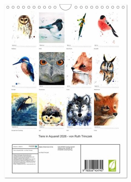 Lieben Sie das Außergewöhnliche? Mit diesem Kalender bekommen sie Zwölf einzigartige Tierportraits. Die Künstlerin Ruth Trinczek hat für sie besondere Tierportraits ausgesucht und künstlerisch überarbeitet. Freuen sie sich auf ein Jahr mit tollen Tieraquarellen.