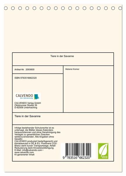 QUALITÄT - Hochwertiger Fotokalender mit 12 wunderschönen Motiven auf lichtbeständigem Bilderdruckpapier, robuste Spiralbindung.NACHHALTIG - deutliche Abfallreduzierung durch bedarfsgerechte Einzelstückfertigung, umweltfreundliches FSC-zertifiziertes Papier, Produktion in Deutschland, klimabewusste Logistik.PERFEKTES GESCHENK - Kalender für Freunde und Familie, für Kinder und Erwachsene, jung und alt, zu Weihnachten, Geburtstag oder zwischendurch.VIELFALT - Bildkalender in verschiedenen Formaten, z.B. DIN A5, DIN A4, DIN A3 sowie DIN A2. Ob Naturmotiv, Gemälde oder Fotos, ideal für ein persönliches Wohlfühlambiente.Tiere Afrika von Autor(in): Melanie Kremer