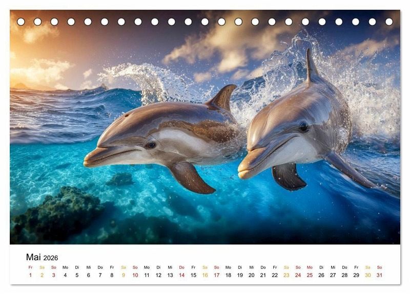Mai: Zwei Delfine, die gemeinsam durch den Ozean gleiten