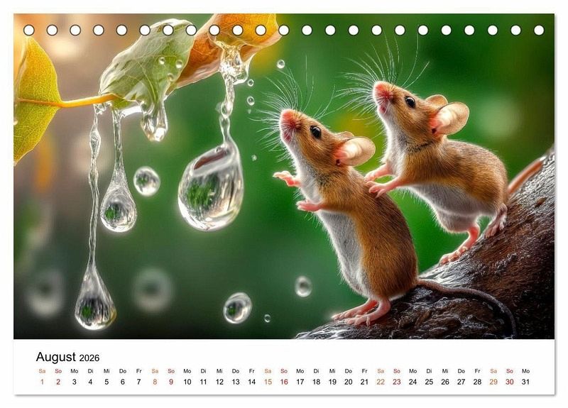 August: Zwei Mäuse beim Regentropfen-Fangen-Spiel