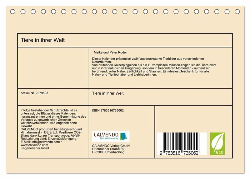 QUALITÄT - Hochwertiger Fotokalender mit 12 wunderschönen Motiven auf lichtbeständigem Bilderdruckpapier, robuste Spiralbindung.NACHHALTIG - deutliche Abfallreduzierung durch bedarfsgerechte Einzelstückfertigung, umweltfreundliches FSC-zertifiziertes Papier, Produktion in Deutschland, klimabewusste Logistik.PERFEKTES GESCHENK - Kalender für Freunde und Familie, für Kinder und Erwachsene, jung und alt, zu Weihnachten, Geburtstag oder zwischendurch.VIELFALT - Bildkalender in verschiedenen Formaten, z.B. DIN A5, DIN A4, DIN A3 sowie DIN A2. Ob Naturmotiv, Gemälde oder Fotos, ideal für ein persönliches Wohlfühlambiente.Tierische Momente in der Natur - nah und berührend. von Autor(in): Roder