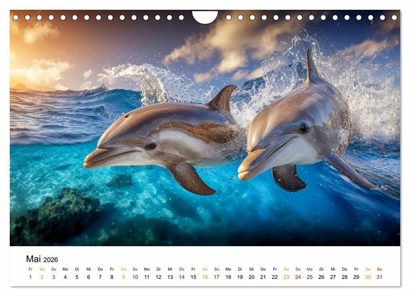 Mai: Zwei Delfine, die gemeinsam durch den Ozean gleiten