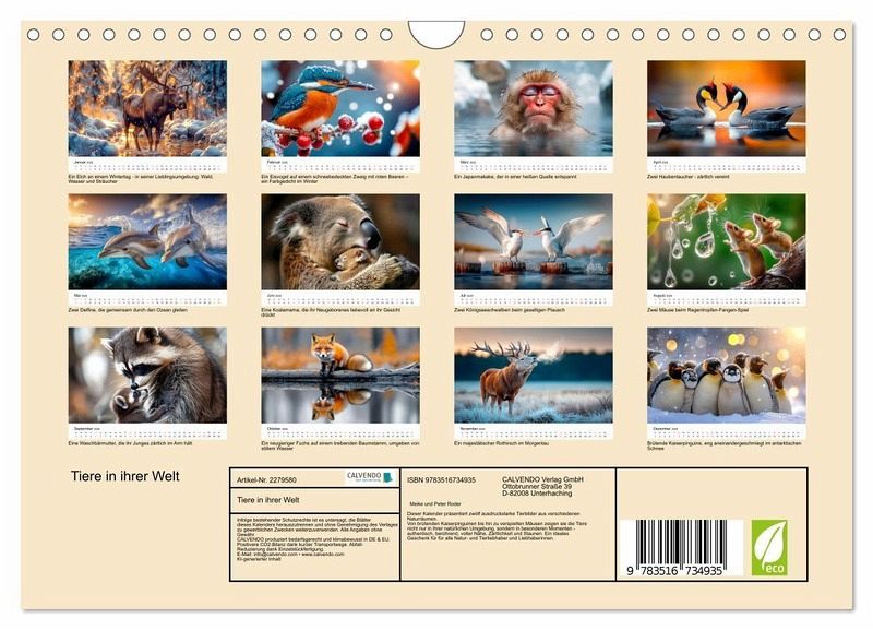 QUALITÄT - Hochwertiger Fotokalender mit 12 wunderschönen Motiven auf lichtbeständigem Bilderdruckpapier, robuste Spiralbindung mit Aufhängebügel.NACHHALTIG - deutliche Abfallreduzierung durch bedarfsgerechte Einzelstückfertigung, umweltfreundliches FSC-zertifiziertes Papier, Produktion in Deutschland, klimabewusste Logistik.PERFEKTES GESCHENK - Kalender für Freunde und Familie, für Kinder und Erwachsene, jung und alt, zu Weihnachten, Geburtstag oder zwischendurch.VIELFALT - Bildkalender in verschiedenen Formaten, z.B. DIN A5, DIN A4, DIN A3 sowie DIN A2. Ob Naturmotiv, Gemälde oder Fotos, ideal für ein persönliches Wohlfühlambiente.Tierische Momente in der Natur - nah und berührend. von Autor(in): Roder
