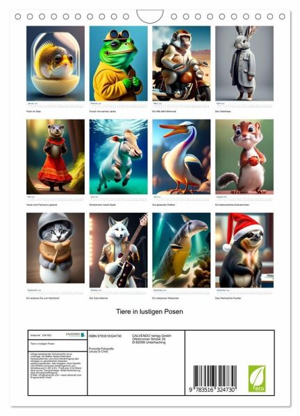 QUALITÄT - Hochwertiger Fotokalender mit 12 wunderschönen Motiven auf lichtbeständigem Bilderdruckpapier, robuste Spiralbindung mit Aufhängebügel.NACHHALTIG - deutliche Abfallreduzierung durch bedarfsgerechte Einzelstückfertigung, umweltfreundliches FSC-zertifiziertes Papier, Produktion in Deutschland, klimabewusste Logistik.PERFEKTES GESCHENK - Kalender für Freunde und Familie, für Kinder und Erwachsene, jung und alt, zu Weihnachten, Geburtstag oder zwischendurch.VIELFALT - Bildkalender in verschiedenen Formaten, z.B. DIN A5, DIN A4, DIN A3 sowie DIN A2. Ob Naturmotiv, Gemälde oder Fotos, ideal für ein persönliches Wohlfühlambiente.Ein Kinderkalender mit lustigen Tierbildern von Autor(in): PuraVida