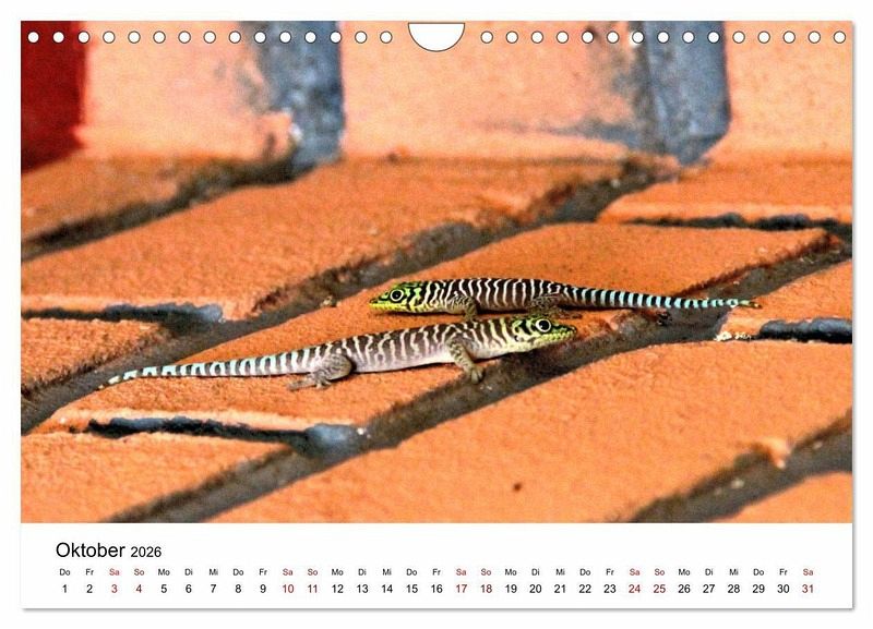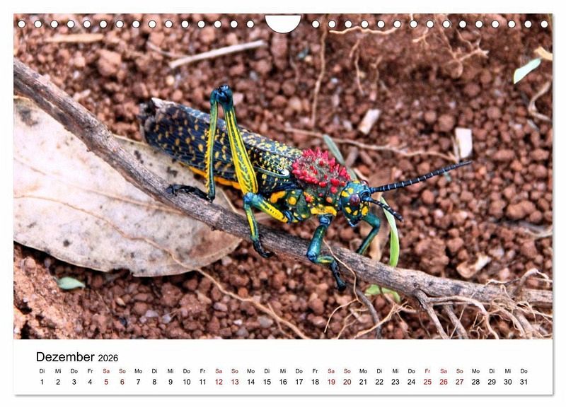 Madagaskar ist weltberühmt als Biodiversitäts-Hotspot. Ob niedliche Lemuren, farbenfrohe Chamäleons, gut getarne Geckos oder ungewöhnliche Insekten. Der Kalender zeigt einige der faszinierenden Tiere, für die Madagaskar bekannt ist.