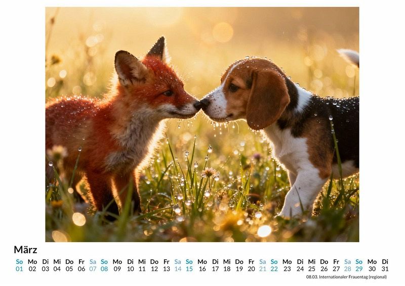 In der Natur gelten ungeschriebene Gesetze. Doch manchmal werden sie auf die schönste Weise gebrochen, wenn Tiere zusammenfinden, die eigentlich keine Gemeinsamkeiten haben sollten. Der Kalender "Tierfreundschaften" fängt diese besonderen Momente ein und zeigt zwölf Szenen voller Vertrauen und Zuneigung über Artengrenzen hinweg. Dieser Kalender ist eine wunderbare Wahl: * Für Tierfreunde, die sich von der Vielfalt der Natur begeistern lassen. * Als Geschenk, das jeden Monat aufs Neue ein Lächeln ins Gesicht zaubert. * Für Menschen, die eine Dekoration mit einer positiven und herzerwärmenden Botschaft suchen. Jedes Monatsblatt präsentiert eine neue, unerwartete Verbindung. Ein Bär teilt seine Beeren mit einem Fuchs, eine Katze schmiegt sich an einen Papagei und ein Reh findet Geborgenheit bei einem Luchs. Diese Szenen, durch das Zusammenspiel von Daten und kreativer Vision zum Leben erweckt, wirken fast wie aus einem Märchen. Sie erzählen kleine Geschichten von Harmonie und dem Überwinden von Unterschieden, festgehalten in eindrucksvollen Fotografien. Beim Kauf dieses Kalenders kann man Folgendes erwarten: * Zwölf einzigartige Monatsmotive, die ungewöhnliche Tierpaare zeigen. * Ein übersichtliches Kalendarium mit Platz für eigene Notizen. * Großformatige Fotografien, die die Details der tierischen Begegnungen sichtbar machen. Dieser Kalender ist mehr als nur ein Zeitplaner. Er ist eine monatliche Erinnerung daran, dass Freundschaft keine Grenzen kennt und das Unerwartete oft das Schönste ist. Ein Begleiter durch das Jahr, der Hoffnung und Freude schenkt. Es lohnt sich, die einzelnen Monatsblätter zu entdecken.