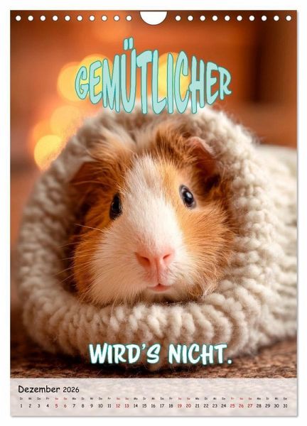 Ob lustige Nager, ein verschlafener Koala oder Katzen in den verrücktesten Posen, dieser Kalender bringt dich garantiert zum Schmunzeln. Jeder Monat bringt ein neues Highlight und kurze, witzige Sprüche ergänzen die Szenen perfekt. Die Motive wurden mit modernster KI gestaltet und in hochwertiger, fotorealistischer Bildsprache umgesetzt. Ein tierischer Kalender, der garantiert für gute Laune sorgt; zuhause, im Büro oder als Geschenk.
