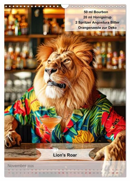 Entdecken Sie den ultimativen Jahreskalender für Cocktail-Liebhaber mit einem tierischen Twist. "Tierisch innovative Cocktailrezepte" ist Ihr Schlüssel zu einem Jahr voller Lachen, Genuss und kreativer Mixgetränke. Jeden Monat überrascht Sie dieser einzigartige Kalender mit einem humorvollen und innovativen Cocktailrezept, inspiriert von der faszinierenden Welt der Tiere. Stellen Sie sich vor, Sie schlürfen einen "Flamingo Fizz" oder genießen einen entspannten Abend mit einem "Lion Roar´s". Jedes Rezept wird durch ein wunderschön gestaltetes, lustiges Tierbild zum Leben erweckt, das nicht nur Ihre Wände schmückt, sondern auch zum Gesprächsthema auf jeder Party wird. Machen Sie sich bereit, Ihre Gäste mit außergewöhnlichen Drinks zu beeindrucken, die so einzigartig sind wie die Tierbilder.