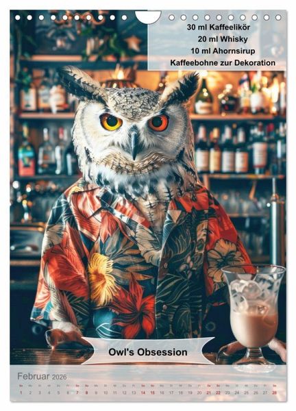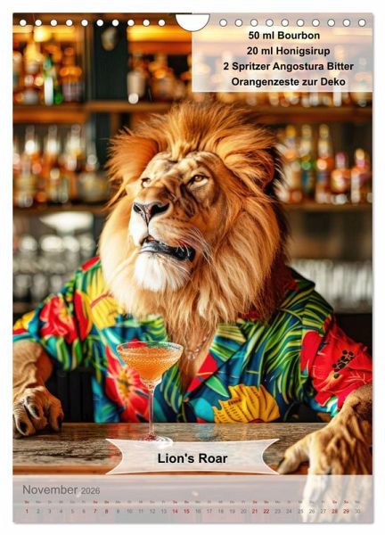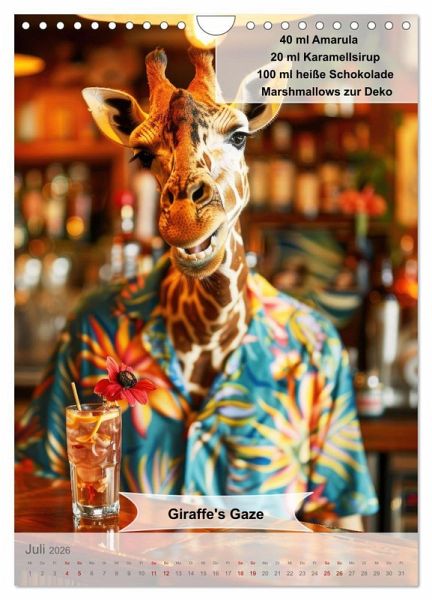 Entdecken Sie den ultimativen Jahreskalender für Cocktail-Liebhaber mit einem tierischen Twist. "Tierisch innovative Cocktailrezepte" ist Ihr Schlüssel zu einem Jahr voller Lachen, Genuss und kreativer Mixgetränke. Jeden Monat überrascht Sie dieser einzigartige Kalender mit einem humorvollen und innovativen Cocktailrezept, inspiriert von der faszinierenden Welt der Tiere. Stellen Sie sich vor, Sie schlürfen einen "Flamingo Fizz" oder genießen einen entspannten Abend mit einem "Lion Roar´s". Jedes Rezept wird durch ein wunderschön gestaltetes, lustiges Tierbild zum Leben erweckt, das nicht nur Ihre Wände schmückt, sondern auch zum Gesprächsthema auf jeder Party wird. Machen Sie sich bereit, Ihre Gäste mit außergewöhnlichen Drinks zu beeindrucken, die so einzigartig sind wie die Tierbilder.