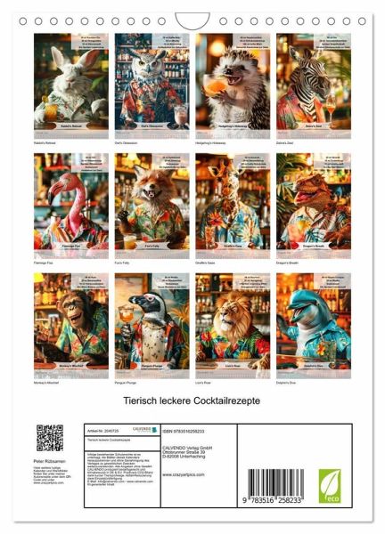 QUALITÄT - Hochwertiger Fotokalender mit 12 wunderschönen Motiven auf lichtbeständigem Bilderdruckpapier, robuste Spiralbindung mit Aufhängebügel.NACHHALTIG - deutliche Abfallreduzierung durch bedarfsgerechte Einzelstückfertigung, umweltfreundliches FSC-zertifiziertes Papier, Produktion in Deutschland, klimabewusste Logistik.PERFEKTES GESCHENK - Kalender für Freunde und Familie, für Kinder und Erwachsene, jung und alt, zu Weihnachten, Geburtstag oder zwischendurch.VIELFALT - Bildkalender in verschiedenen Formaten, z.B. DIN A5, DIN A4, DIN A3 sowie DIN A2. Ob Naturmotiv, Gemälde oder Fotos, ideal für ein persönliches Wohlfühlambiente.Tierisch innovative und lustige Cocktailkreationen für coole Barkeeper von Autor(in): Peter Rübsamen