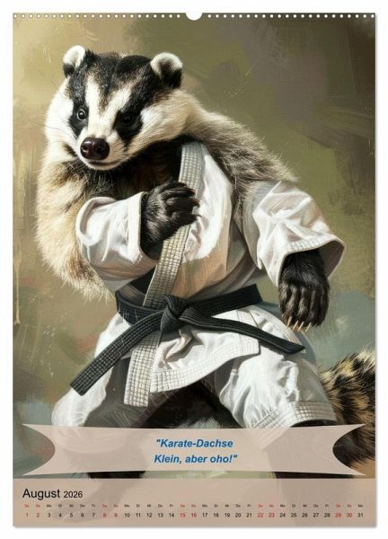 Tauchen Sie ein in die Welt der "Tierisch lustigen Karatekämpfer"! Unser einzigartiger Jahreskalender präsentiert Ihnen Monat für Monat humorvolle Zitate und bezaubernde Tiere, die in beeindruckenden Karatepositionen posieren. Von kraftvollen Löwen bis zu geschmeidigen Katzen, jeder Monat überrascht mit einem neuen, lachenden Abenteuer. Perfekt für Kampfsportbegeisterte oder jeden, der eine Prise Humor in seinem Alltag schätzt. Dieser Kalender ist nicht nur ein Blickfang an jeder Wand, sondern auch das ideale Geschenk, um Ihren Freunden und Familie ein Lächeln auf die Lippen zu zaubern. Lassen Sie sich jeden Tag aufs Neue von unseren mit Ki generierten tierischen Karatekämpfern inspirieren und sorgen Sie für heitere Momente das ganze Jahr über.