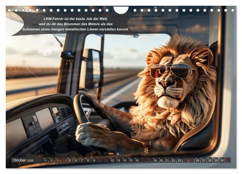 Entdecken Sie den ultimativen Jahreskalender für alle LKW-Fahrer und Trucker mit Humor: "Tierisch lustige LKW-Fahrer". Dieser einzigartige Kalender ist die perfekte Mischung aus Spaß und Faszination, die jeden Monat aufs Neue begeistert. Mit einer sorgfältig ausgewählten Sammlung von KI generierten Bildern, die Tiere im Führerhaus zeigen, begleitet von urkomischen Sprüchen, ist dieser Kalender mehr als nur eine Datumsanzeige - er ist ein täglicher Stimmungsaufheller. Ob für sich selbst oder als Geschenk, dieser Kalender ist die ideale Wahl für jeden, der im Transportgewerbe tätig ist und sich oder seinen Kollegen ein Lächeln schenken möchte. Ideal für Geburtstage, Feiertage oder als kleine Aufmerksamkeit zwischendurch - mit diesem Kalender liegen Sie immer richtig.