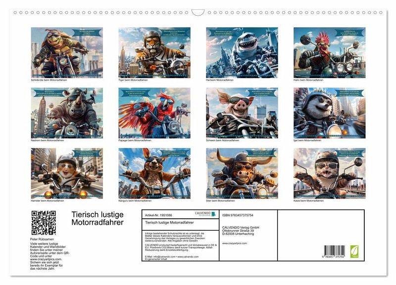 Tauchen Sie ein in die Welt der "Tierisch lustige Motorradfahrer". Unser einzigartiger Jahreskalender ist der perfekte Begleiter für jeden Motorradenthusiasten, der Humor und Abenteuer auf zwei Rädern schätzt. Monat für Monat werden Sie von charmant-witzigen Tieren auf Motorrädern begrüßt, begleitet von humorvollen Zitaten, die garantiert ein Lächeln auf Ihre Lippen zaubern. Ideal als Geschenk für Freunde des Motorradfahrens oder als fröhliche Dekoration für Ihr eigenes Zuhause. Lassen Sie sich jeden Tag aufs Neue von unseren vierbeinigen Freunden inspirieren und erinnern Sie sich daran, dass das Leben eine spannende Fahrt ist. Mit dem durch KI-Unterstützung generierten "Tierisch lustige Motorradfahrer"-Kalender wird jeder Tag zu einem kleinen Abenteuer.