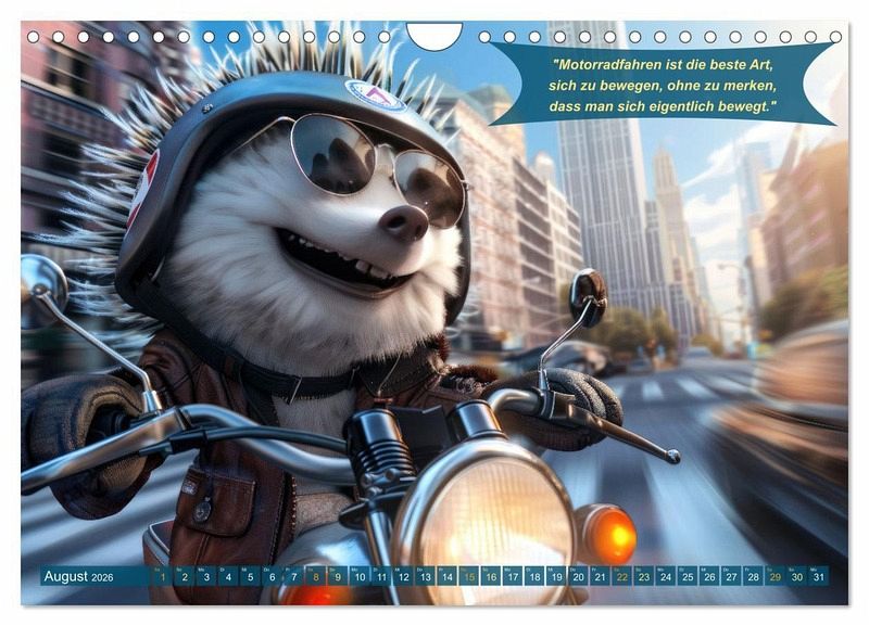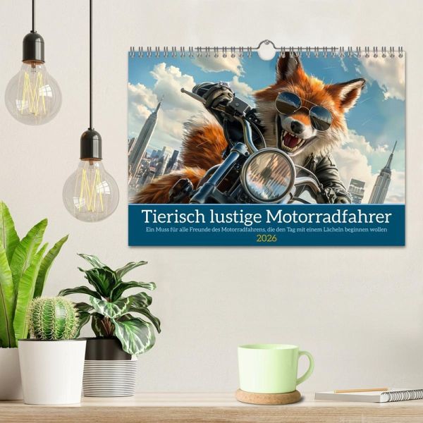 Tauchen Sie ein in die Welt der "Tierisch lustige Motorradfahrer". Unser einzigartiger Jahreskalender ist der perfekte Begleiter für jeden Motorradenthusiasten, der Humor und Abenteuer auf zwei Rädern schätzt. Monat für Monat werden Sie von charmant-witzigen Tieren auf Motorrädern begrüßt, begleitet von humorvollen Zitaten, die garantiert ein Lächeln auf Ihre Lippen zaubern. Ideal als Geschenk für Freunde des Motorradfahrens oder als fröhliche Dekoration für Ihr eigenes Zuhause. Lassen Sie sich jeden Tag aufs Neue von unseren vierbeinigen Freunden inspirieren und erinnern Sie sich daran, dass das Leben eine spannende Fahrt ist. Mit dem durch KI-Unterstützung generierten "Tierisch lustige Motorradfahrer"-Kalender wird jeder Tag zu einem kleinen Abenteuer.